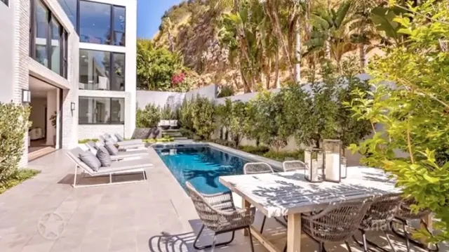 But what really steals the show is the outdoor area. Kendall can relax by her private pool or hang out on a rooftop terrace with an amazing view of the city. Just picture waking up to that every day!